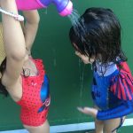 Então, essa semana, para fazer uma despedida como o verão merece, o Maternal 2 organizou um banho de mangueira. Aproveitamos o sol e o calor para nos divertir e aprender numa tarde pra lá de especial. Além de brincar, as crianças fizeram jogos temáticos onde só valiam elementos que remetessem ao verão, piscina, sol e mar. A farra foi contagiante!