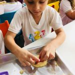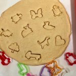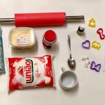 Providenciamos os ingredientes e cortadores. Em seguida, instigamos as crianças perguntando a elas: como faríamos para preparar refeições se não houvesse a indicação da quantidade e o modo de preparo ?!