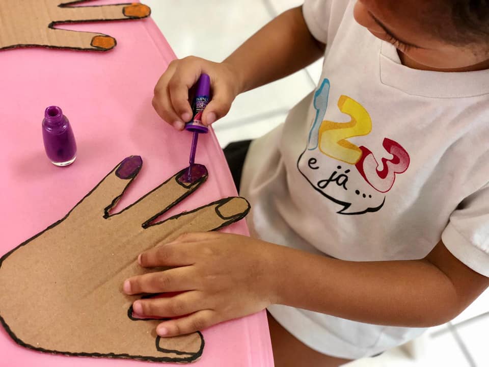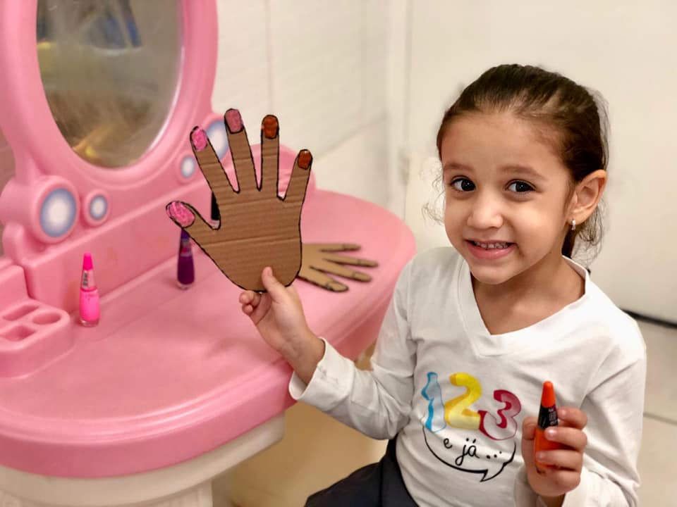 Eles toparam na hora! A brincadeira rendeu! Trabalhamos a coordenação motora, cuidamos da cabeleira dos “clientes” que saíram super satisfeitos. Teve até serviço de manicure!