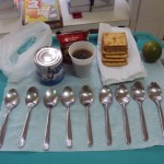 Para que eles pudessem distinguir e reconhecer esses sabores e em que região da língua são percebidos mais claramente, utilizamos; café sem açúcar, limão, sal, biscoito cream cracker, geleia de mocotó e leite condensado.