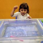 Durante a atividade, cada um falou o “comportamento” de cada objeto na água, se afundava ou flutuava.
