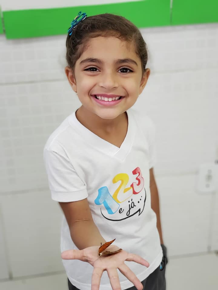 Uma amiguinha trouxe uma borboleta que encontrou na varanda de casa e quis compartilhar com os amigos aquela vivência. Os pequenos se depararam com a explosão de cor e, ao mesmo tempo, a delicadeza do bichinho, suas asas tão fininhas e antenas ainda mais delicadas.