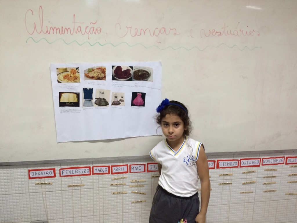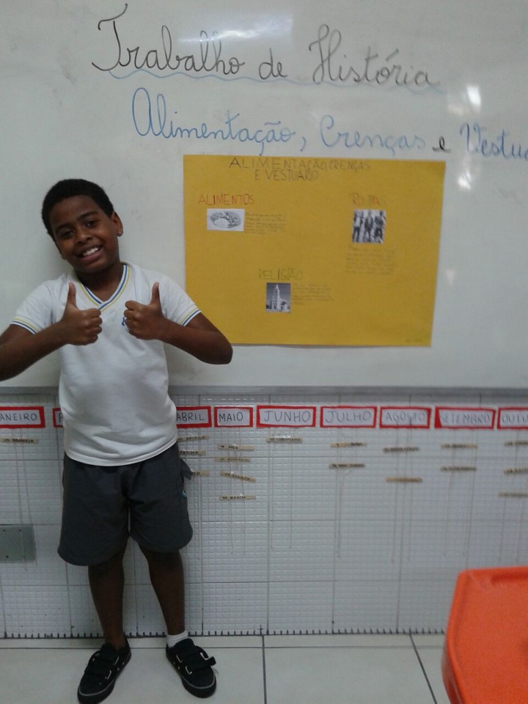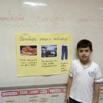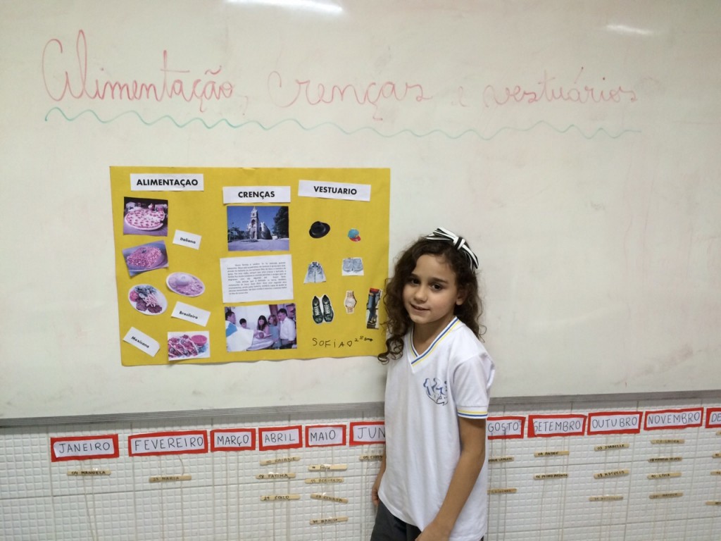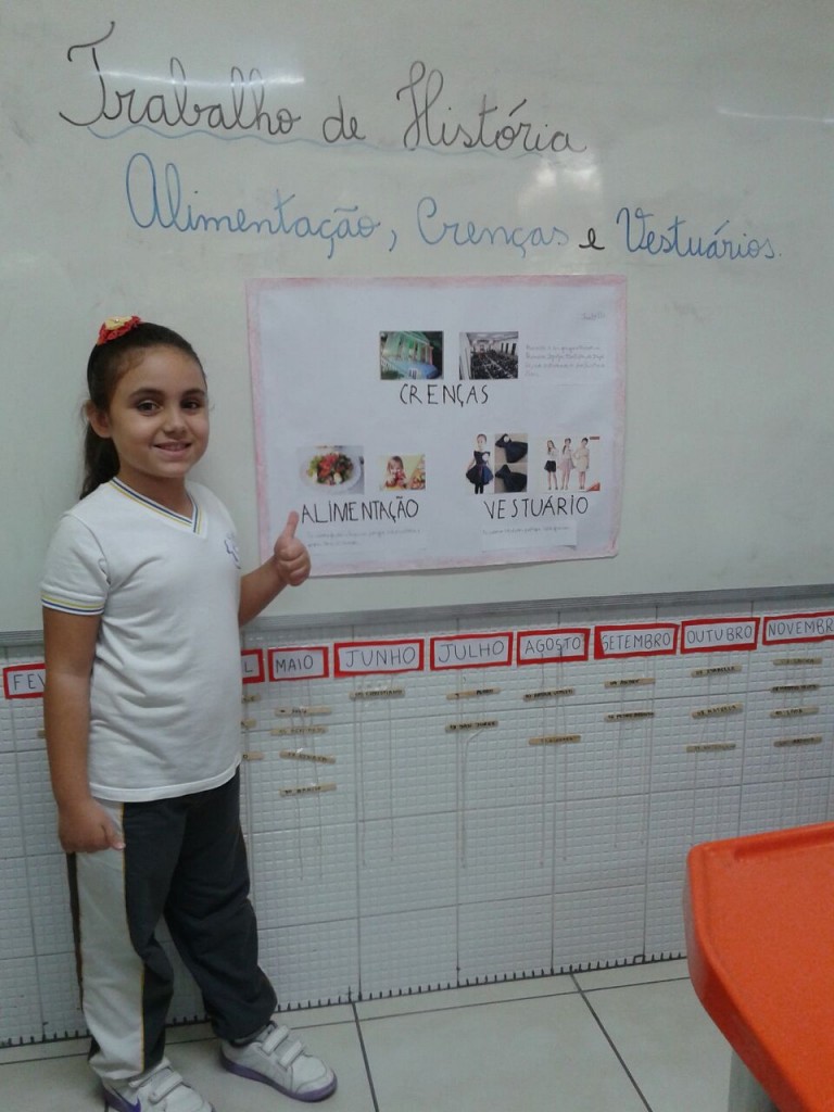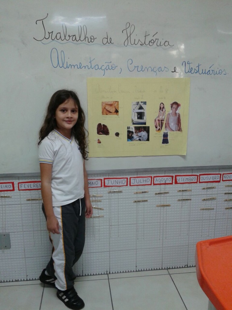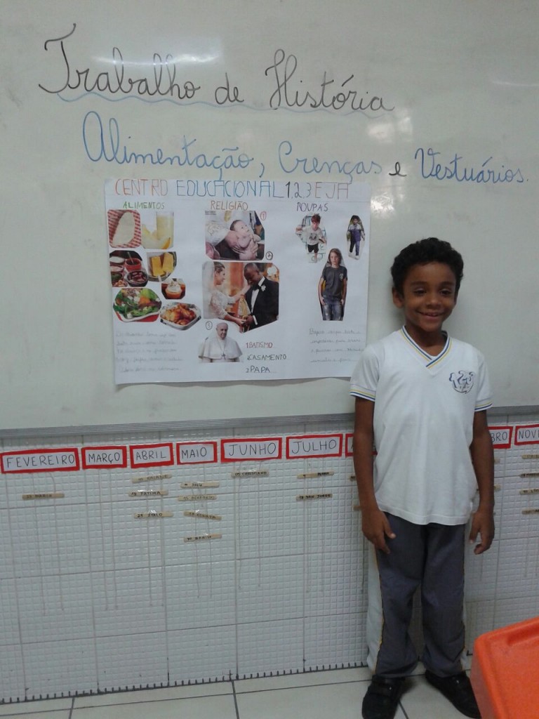 O cartaz preparado pelos alunos explorava o conteúdo de História (Vivendo em família, o dia a dia das famílias, os costumes da cada família, Famílias e costumes diferentes). Mas não bastava criatividade na execução! Era preciso vencer a timidez e apresentar. E eles se saíram super bem. Parabéns, 2º ano!